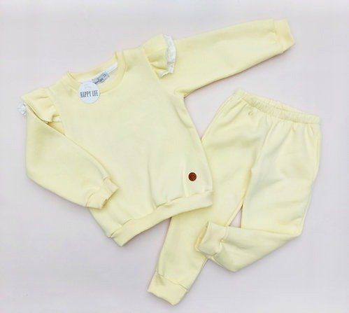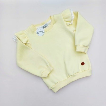 Confeccionado en frisa, detalle de puños y doble volado en hombros combinado con Broderie.