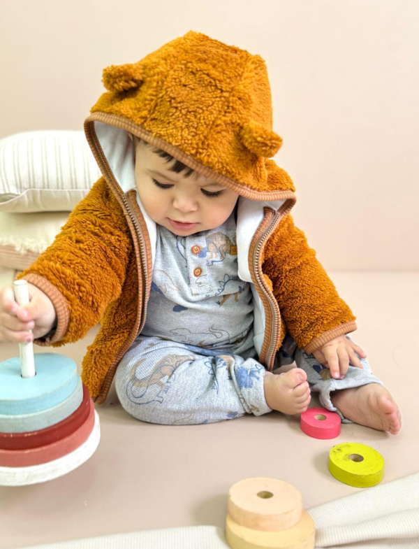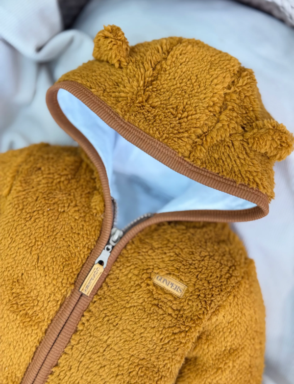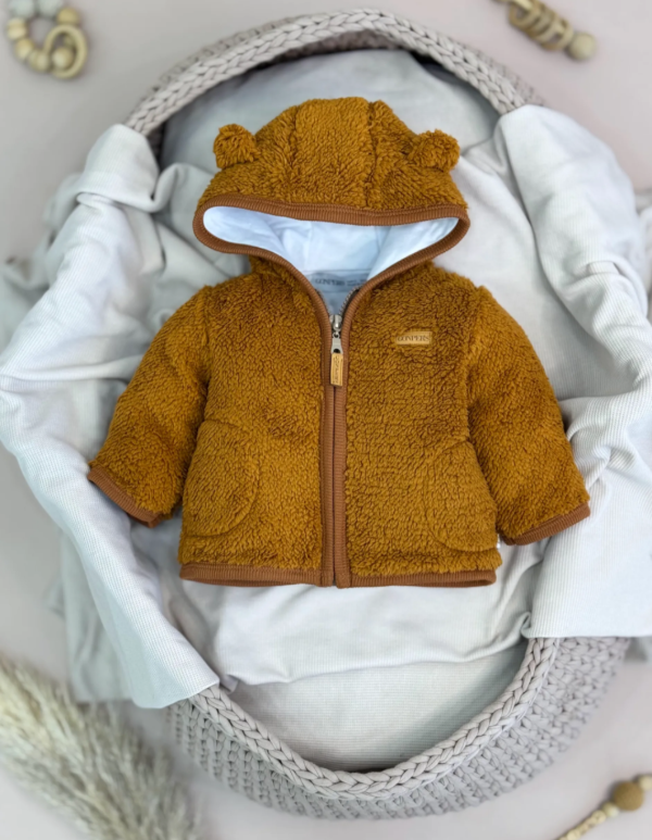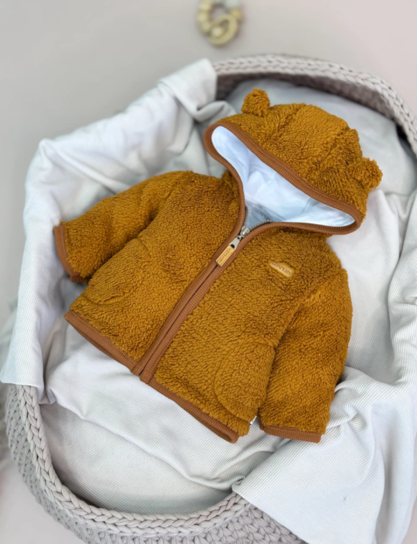 Campera Sherpa forrada en Jersey, con cierre y capucha con orejitas.