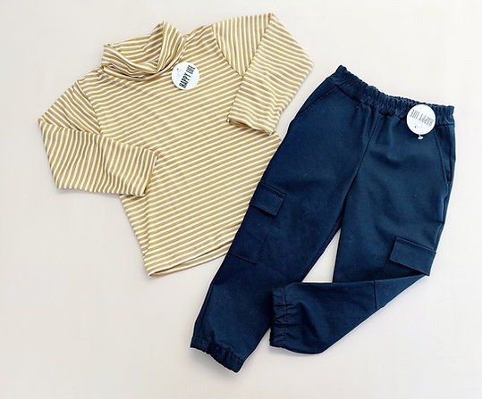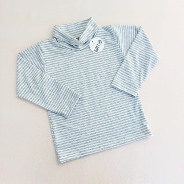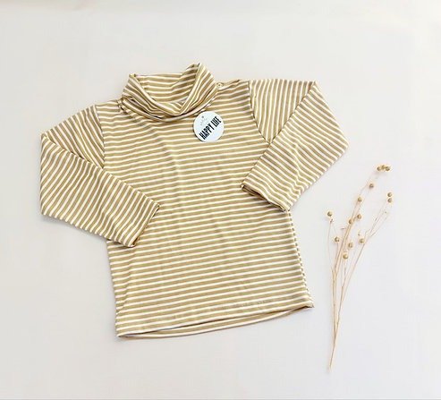 Polera Bran confeccionada en Modal rayada color gris y mostaza con blanco.