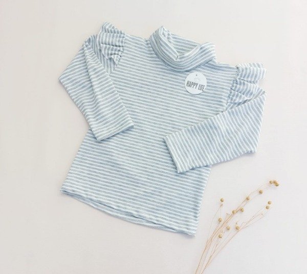 Polera Bran confeccionada en Modal rayada color gris con vuelos en hombros.