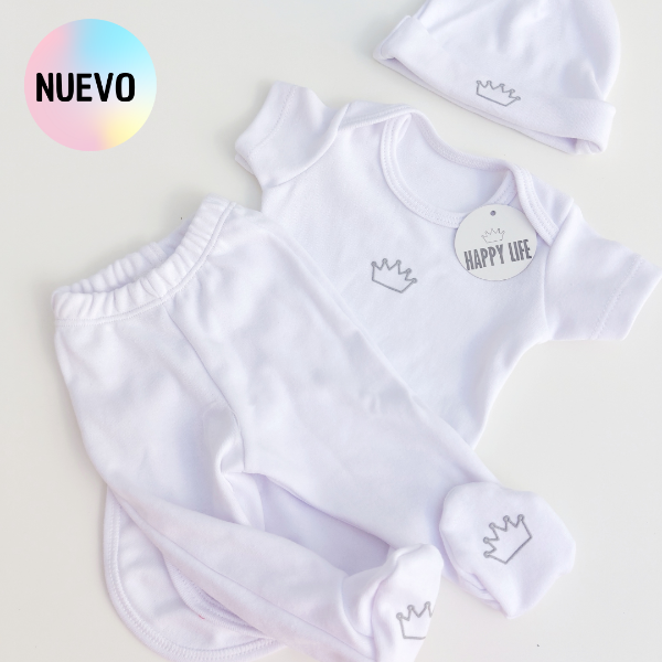 Ajuar 3 piezas confeccionado en 100% algodón hipoalergénico.
