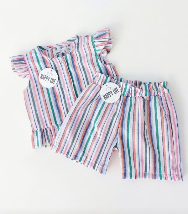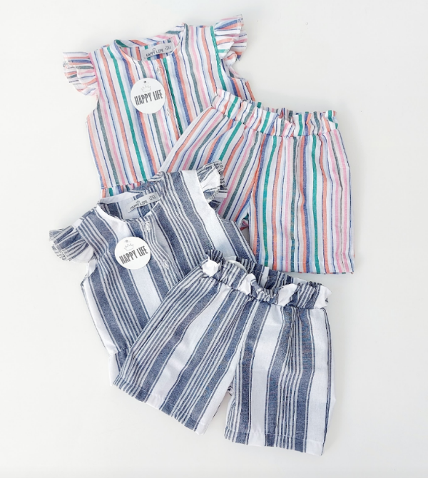 Conjunto Stefi compuesto con Blusa y short a rayas azules, diseñado en lino.