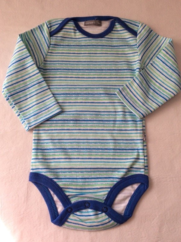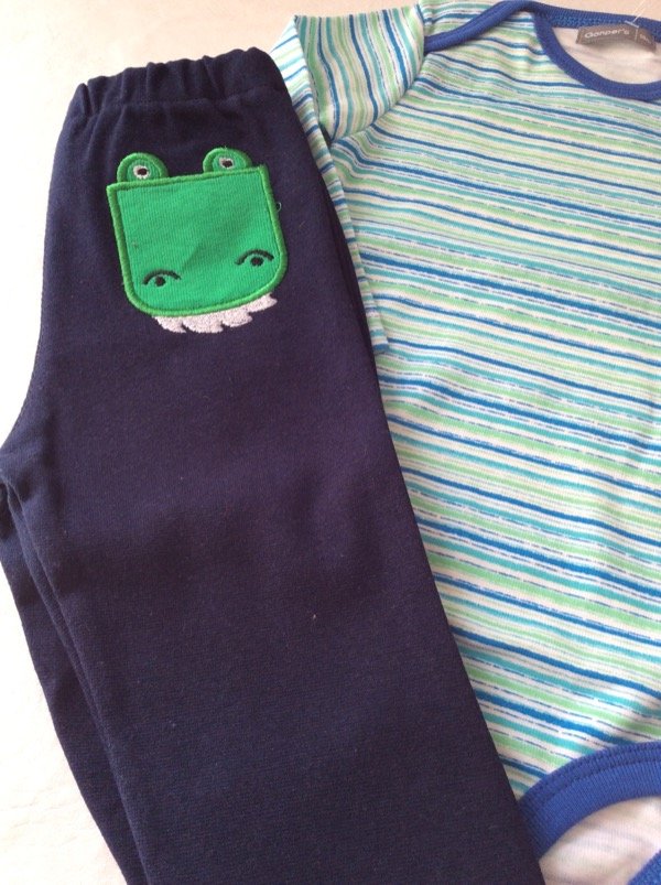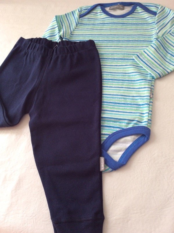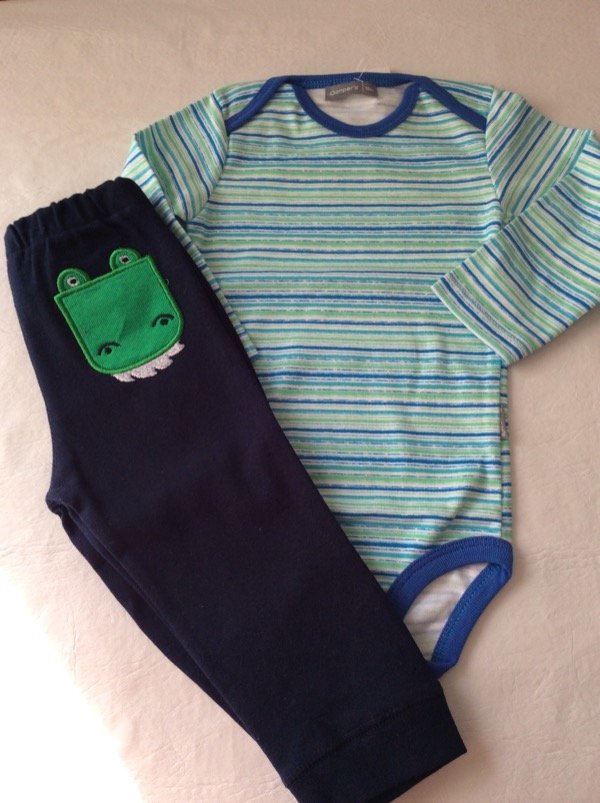 Dúo Body con cuello americano a rayas combinado al tono con el bordado del pantalón sin pie en la parte trasera. Super canchero.