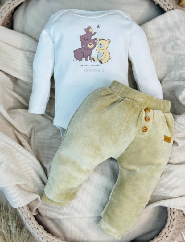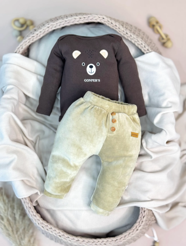 Body Americano Animals confeccionado en Reeb de algodón combinado con Pantalón Tokio en Reeb súper canchero o en Plush de algodón.