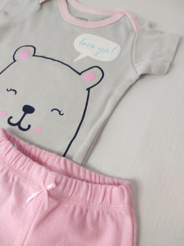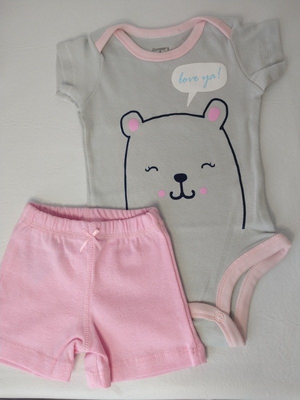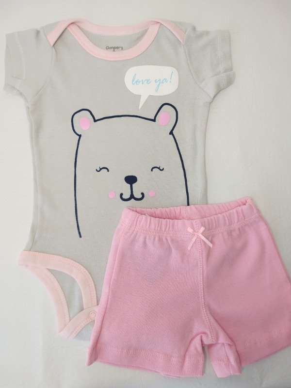 Dúos Osita diseñado en Reeb peinado 30.1, con cuello americano se prende con broches al tono con nado con shortcito en color Rosa.