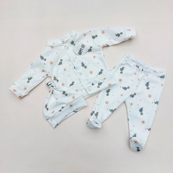 Este conjunto está confeccionado en tela Wafle/Panal en 3 piezas (Chauqeta+gorro+rana).