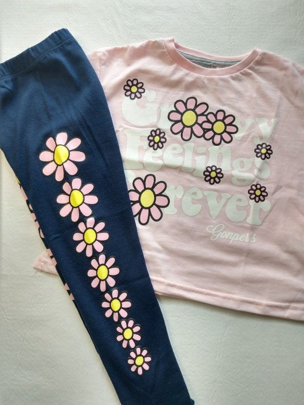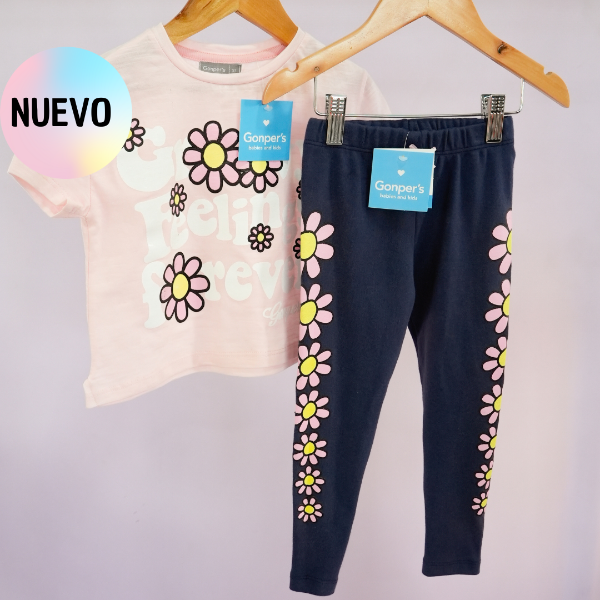 Dúo Margarita de la línea Kids, excelente diseño confeccionado remerita corta en Jersey de algodón calza en Reeb, estampa de flores al tono con la remerita y calza. Podrás encontrar los siguientes talles 3T, 4T, 6T, 8T y 10T.