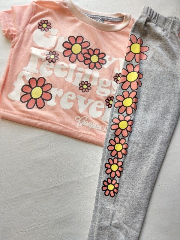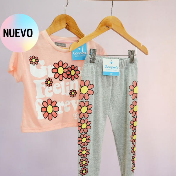 Dúo Margarita de la línea Kids, excelente diseño confeccionado remerita corta en Jersey de algodón calza en Reeb, estampa de flores al tono con la remerita y calza. Podrás encontrar los siguientes talles 3T, 4T, 6T, 8T y 10T.
