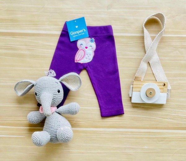 Calza Lechucita en violeta con detalle de bordado con doble aplique de dos colores.