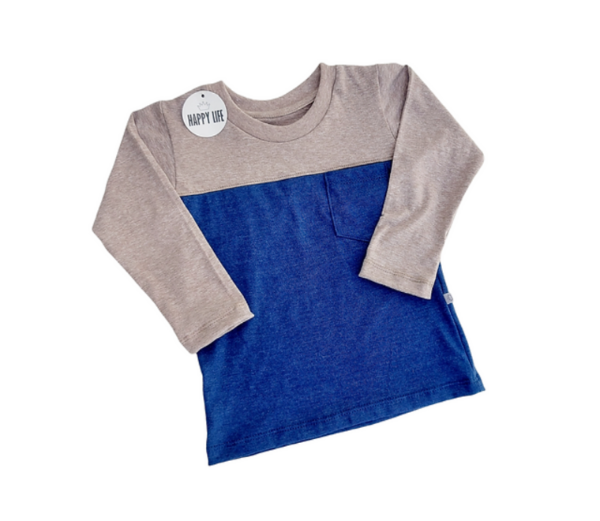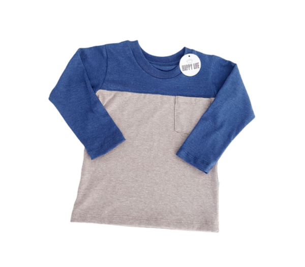 Remera Ecuador con detalle de bolsillo, diseñada en Jersey, combinada en color gris y azul.