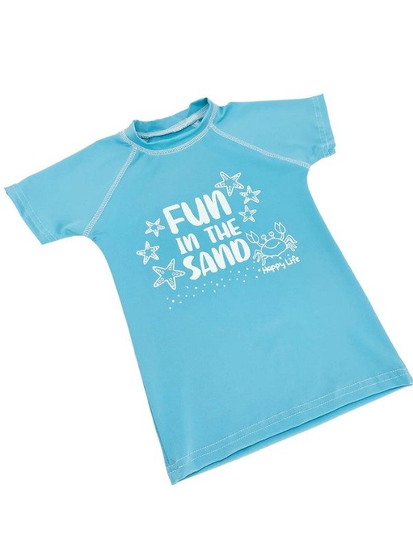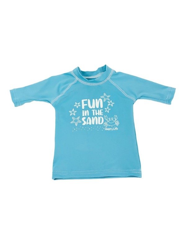 Remera con protección "UV" factor 50, estampado en frente fondo aqua muy delicado diseño, mangas cortas o 3/4.