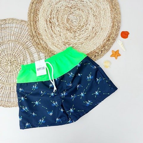 Short de baño combinado - Verde + Azul estampado (2A a 10A)