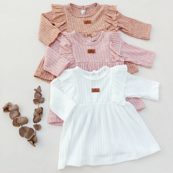 Vestido Luci confeccionado en Lanilla de morley tonos disponibles Ladrillo y Rosa viejo talles desde 6 meses a 2 años.