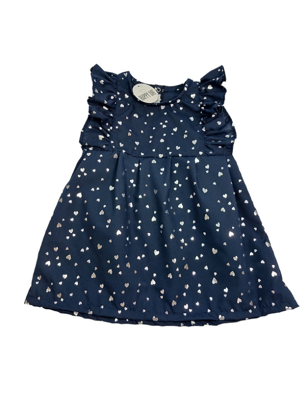 Vestido confeccionado en Batista: Tela mundialmente conocida por su suavidad, delicadeza y ligereza, Es un tejido transparente, además de resistente. Con detalles de corazoncitos plateados que lo hacen super delicado e ideal para vestir en fiestas.