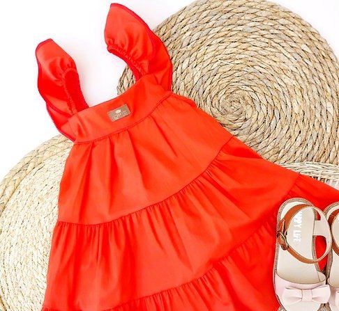 Vestido Fran confeccionado en POPLIN ELASTIZADO, un tejido ligero y suave, compuesto por algodón y fibras elásticas que brindan mayor flexibilidad. Es perfecto para ropa infantil, como camisas, blusas y vestidos, ya que proporciona comodidad, durabilidad y un ajuste adecuado sin perder su firmeza. Vuelve el vestido mas solicitado! Confeccionado con pretina y detalle de volados en sus hombros y capas con gran amplitud. En Color Rojo.